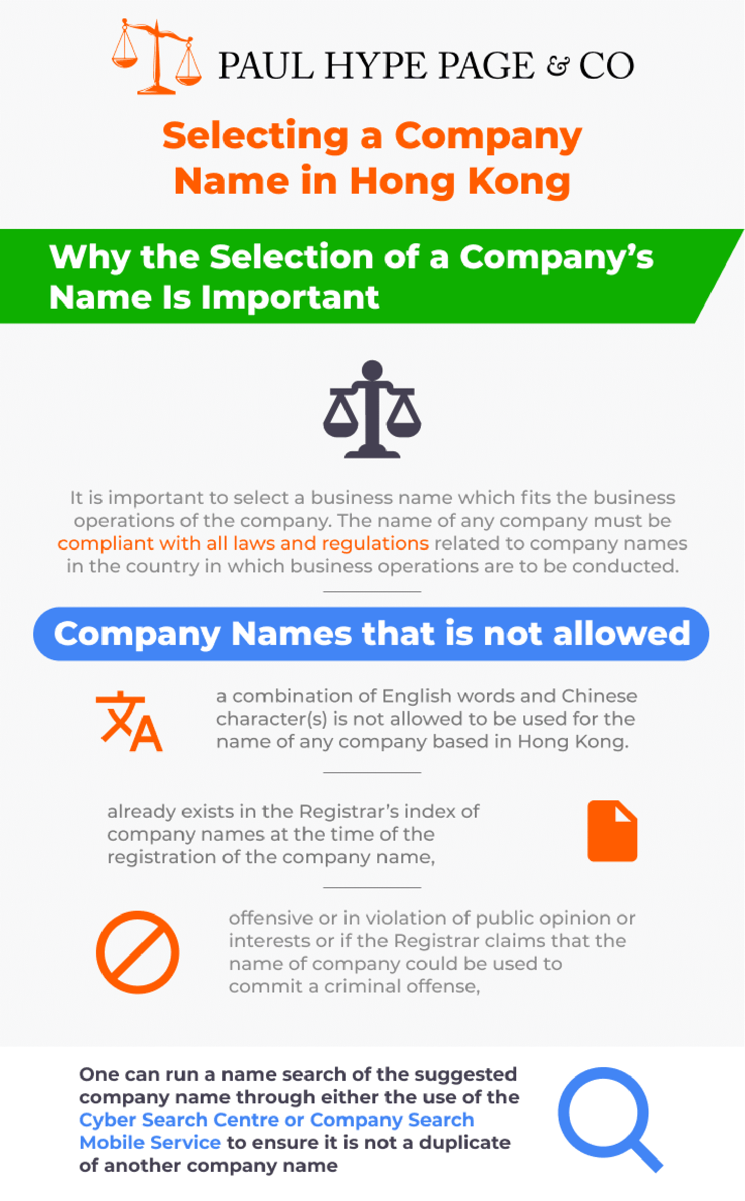 Selecting a business name is a vital process which must be completed by any new business anywhere in the world. Such is also the case about companies based in Hong Kong. Any prospective business owner who owns a company which is to be easily identified, frequently discussed, and recommended by any customer of the business will be aided in this matter through the use of a well-chosen name for the business.